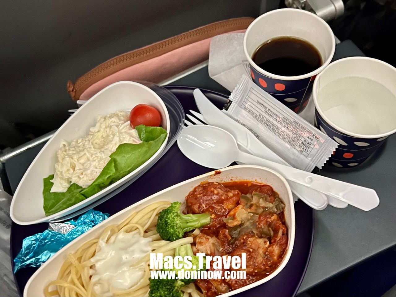 2개 중에 고를 수 있었는데 처음엔 비빔밥을 골랐고 두번째는 소고기가 떨어져 닭고기가 곁들여진 스파게티를 고를 수밖에 없었습니다. 직원분이 친절하게 안내해 주셔서 감사했습니다. 비빔밥은 완전 제 취향이었습니다. 앞으로 유럽 가서 그리워질 거 같았는데 며칠 생각이 나더군요. 닭고기가 곁들여진 스파게티는 짜거나 달지 않아서 건강한 맛이었습니다. 매식사마다 커피와 물을 받을 수 있었습니다. 참고로 식사 사이에 간식이 제공되었습니다.
