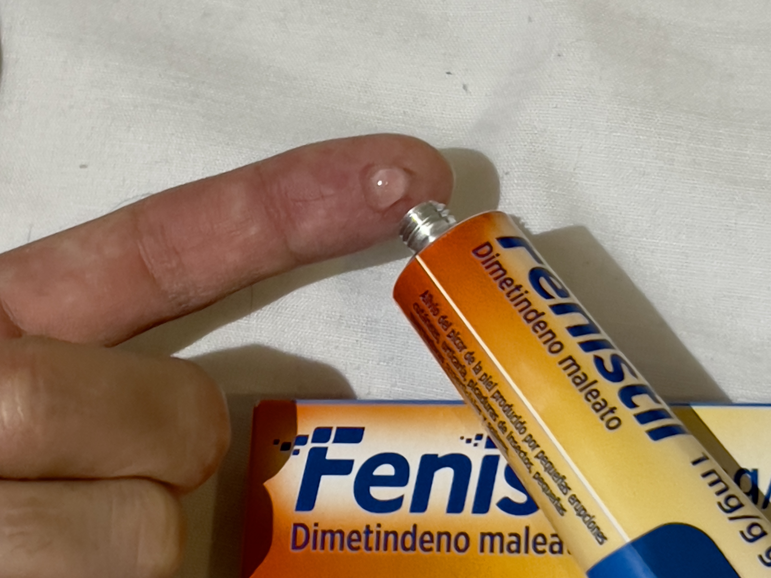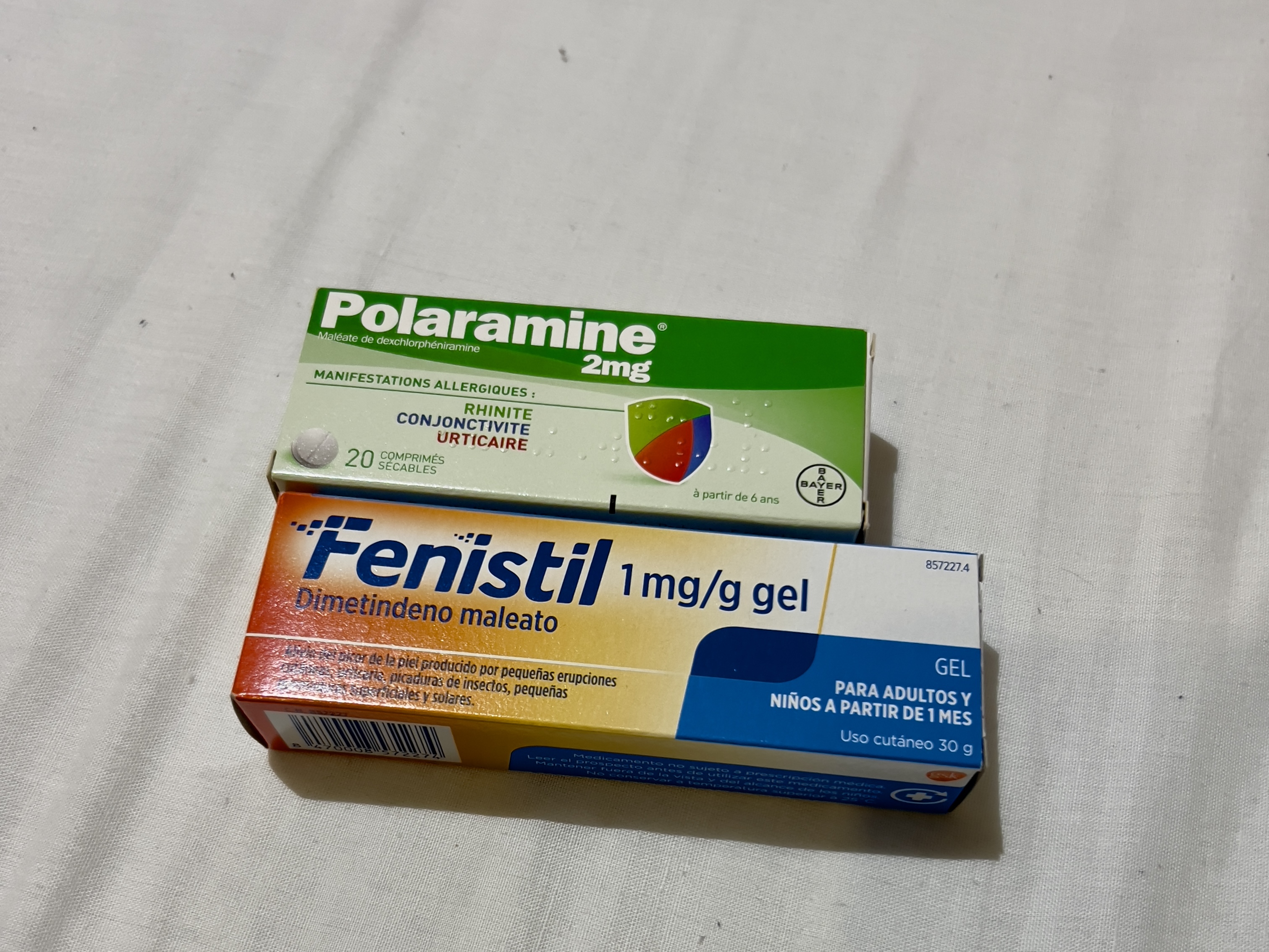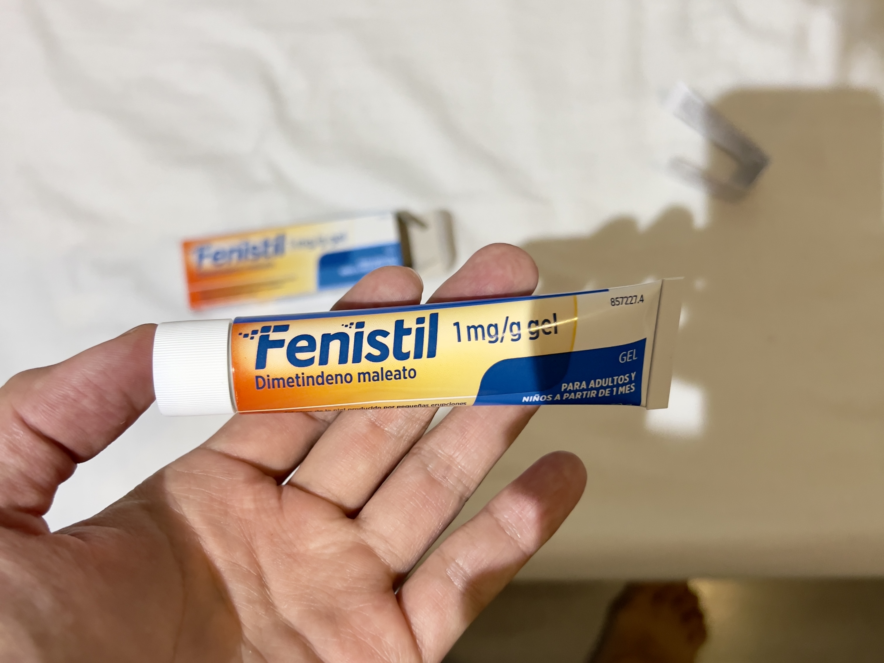 제가 유럽 현지 약국에서 구입한 약은 총 2가지였습니다. 하나는 바르는 연고, 다른 하나는 먹는 항히스타민제였어요. 연고는 바르고 나니까 잠깐은 효과가 있는 거 같았어요. 간지러울 때마다 바르라고 해서 들고 다니면서 발랐습니다. 재형은 투명한 연고였어요. 무색무취고 바르고 다른 느낌은 없었습니다. 마르면서 살짝 쿨링감은 있었던 거 같아요. 참고로 페니스틸은 독일 연고입니다. 독일이 약은 잘 만들어요^^