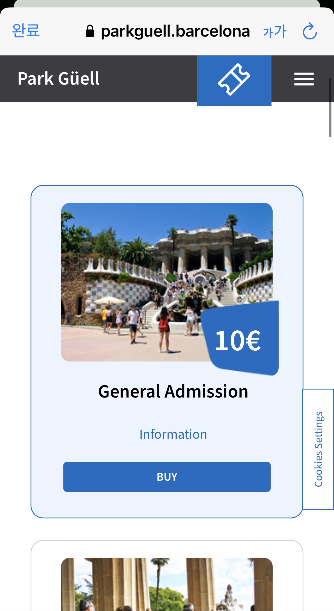 구엘공원 공식사이트를 눌러주시면 됩니다. 인당 가격은 10유로 입니다.