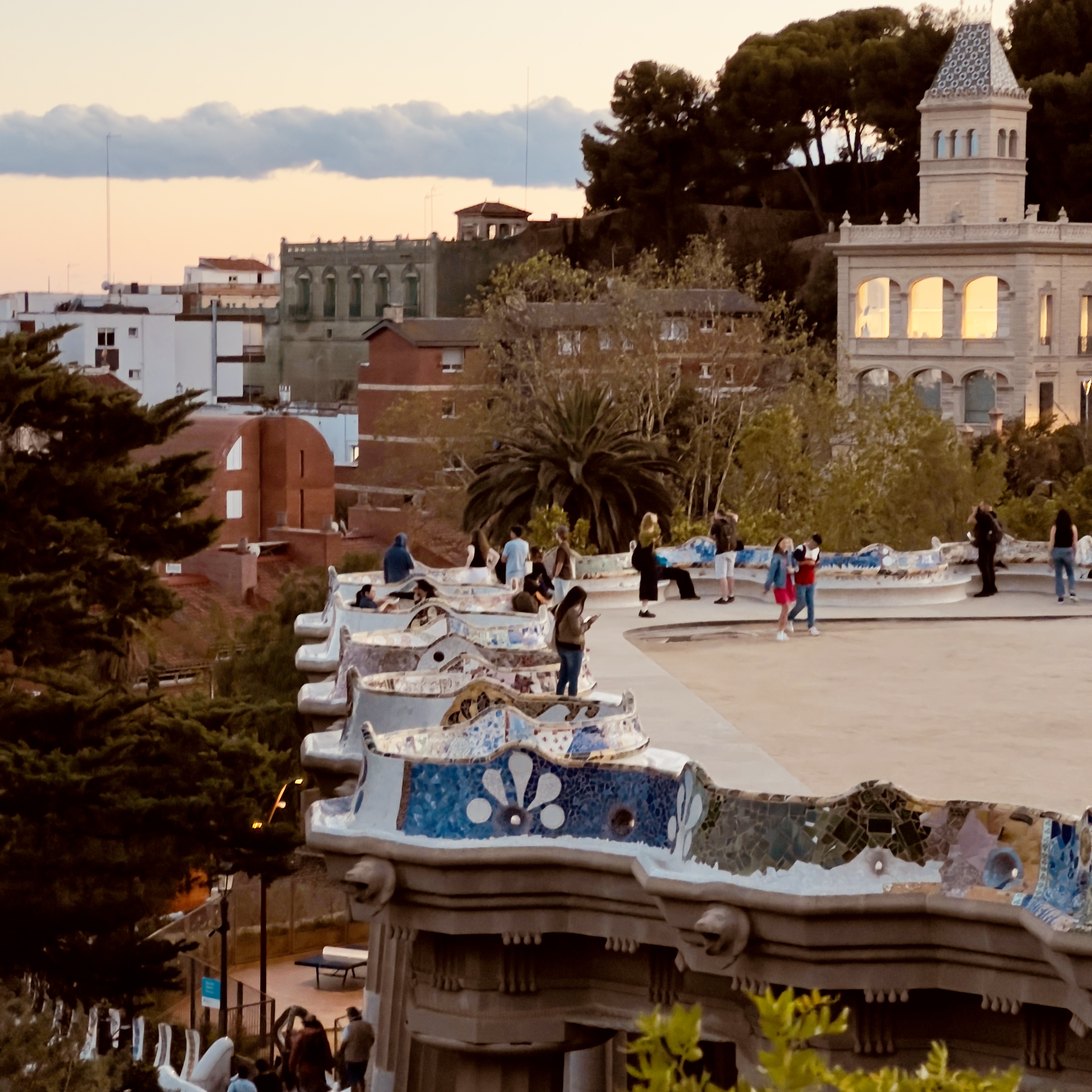 구엘 공원은 생각보다 넓습니다. 사진의 장소보다 더 높은 곳이 있는데 밤이 늦어서 사진은 찍지 않았습니다. 해지고 난 뒤 바르셀로나의 야경을 감상이 가능합니다. 또 바르셀로나에서 보이는 산 위에 지어진 성인 티비다보 바로 맞은편이라 사진을 찍으면 정말 이쁘게 나왔습니다.