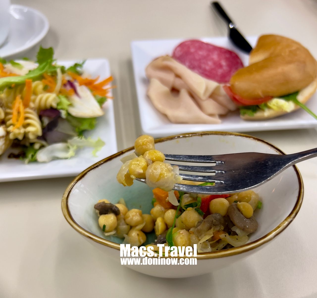음식은 크게 식사류와 디저트류로 나눠지고 샐러드와 가벼운 과일 등이 제공됩니다. 신선한 야채가 좀 당겼는데 원 없이 먹어서 좋았습니다. 음료수 또한 무제한으로 제공되기 때문에 신나게 마셨네요 ^^