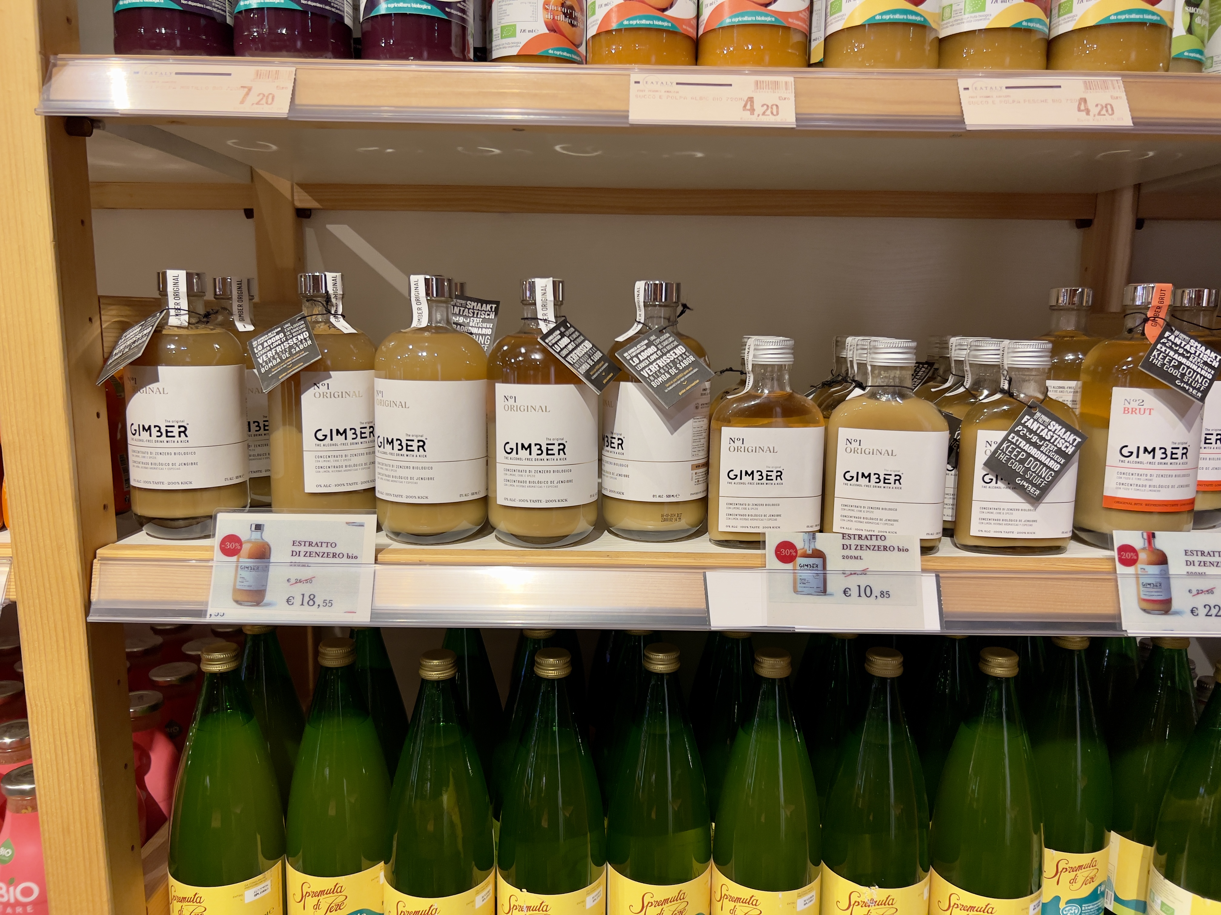 마지막으로 이탈리아뿐만 아니라 유럽 전역에 식재료 구할 수 있어요. 사진에 제품은 프랑스 짐버라는 제품인데 한국에서도 유명하죠. 파격적으로 세일을 하길래 한병 집어 봤네요. 원래 작은 병이 15유로 정도 하는데 11유로 밑으로 구할 수 있었어요.