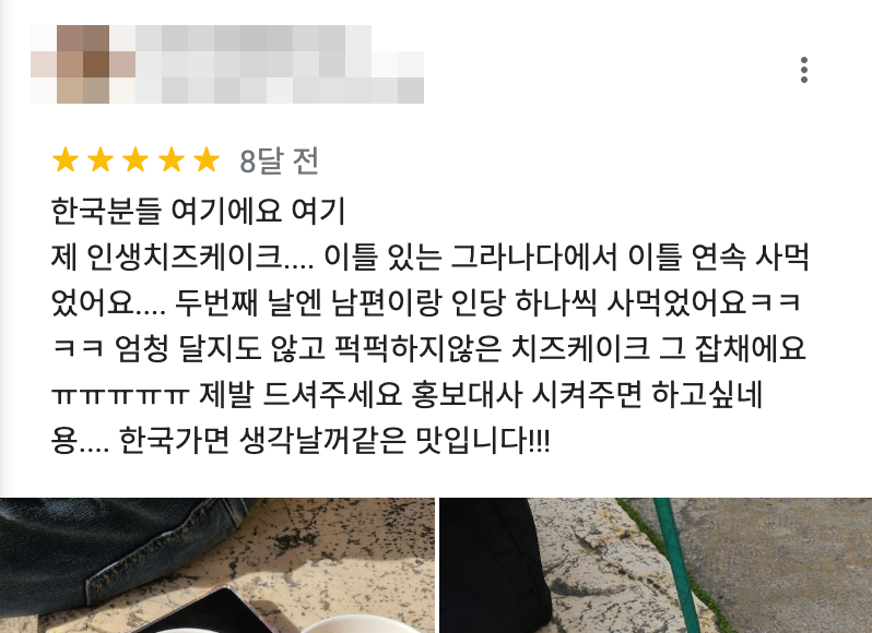 저는 개인적으로 아주 맛있었습니다. 다음에 또 사 먹을 거예요! 그라나다 와서 무슨 치즈케이크이야 싶을 수 있지만 맛은 보장합니다.
