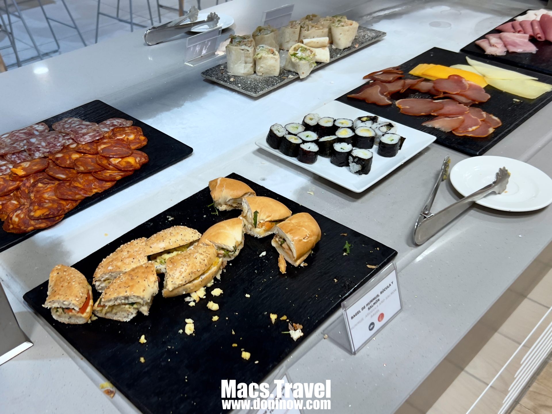 라운지 모습은 일단 깔끔한 편이었습니다. 테이블 간에 간격도 넓은 편이라 편하게 먹을 수 있었습니다. 음식의 종류는 크게 4종류였는데 샌드위치 같은 식사류, 디저트류, 따뜻한 플레이트 음식, 그리고 샐러드가 있었습니다.