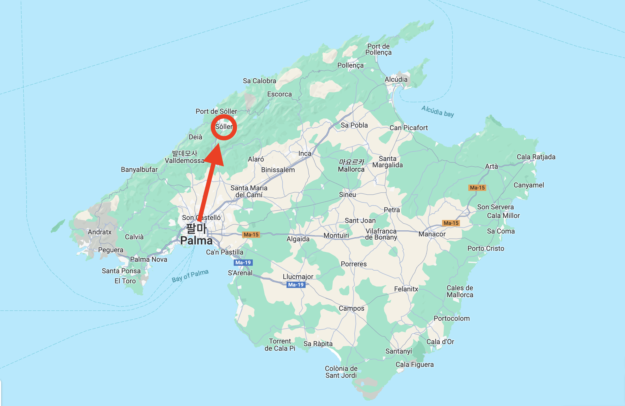 마요르카는 제주도 2배가 넘는 사이즈입니다. 유럽인들에게는 제주도 같은 휴양지로 유명한 섬이죠. 가볼 만한 곳이 참 많은 섬인데요. 마요르카 가장 큰 도시인 팔마에서 반대편 북쪽에 위치한 소예르를 가는 방법에 대해서 알아보겠습니다. 그리고 어떻게 루트를 구성했는지도 적어 놓았으니 도움이 되길 바라겠습니다.