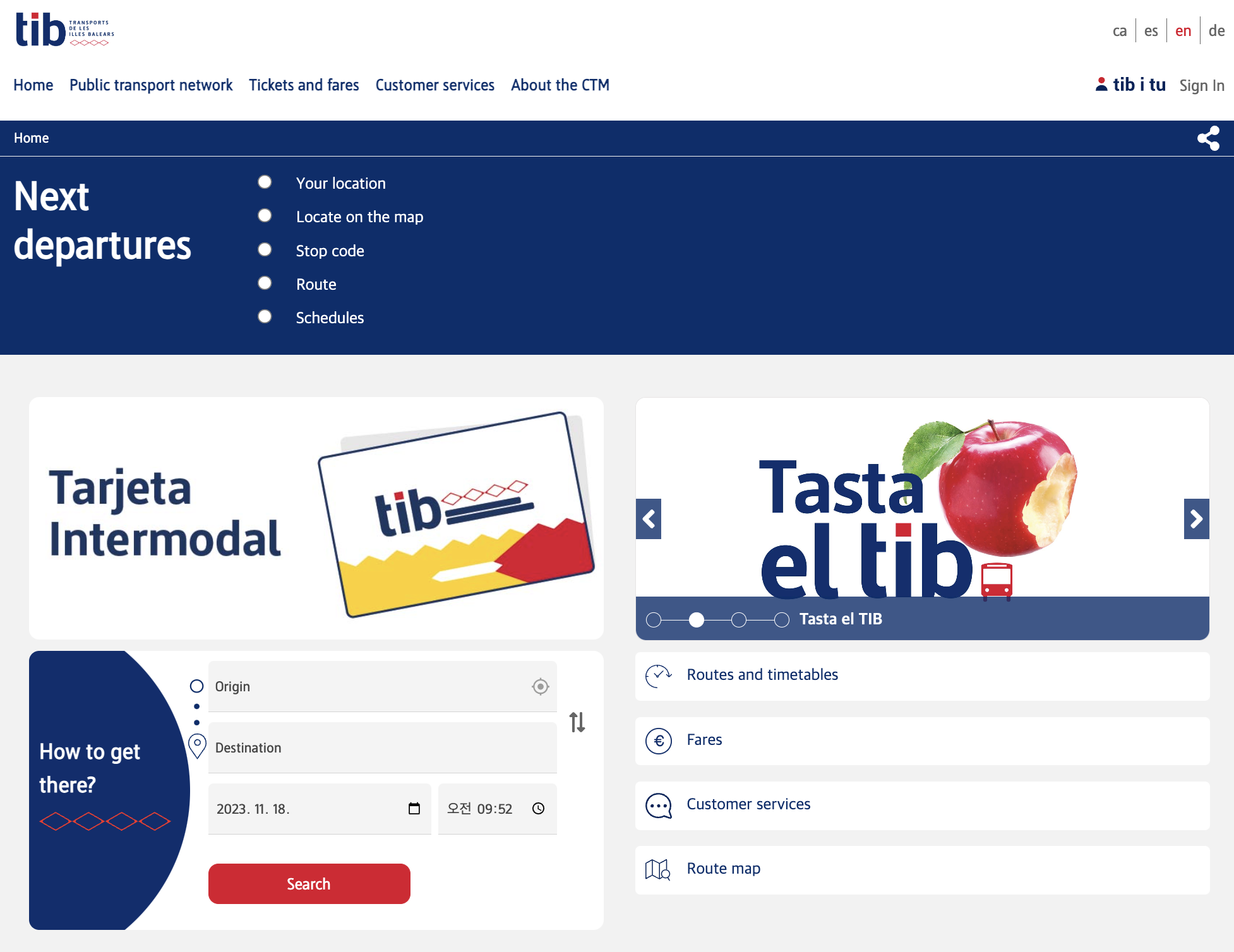 원하는 곳을 가기 위해서 구글맵으로 찍어봐도 버스번호가 나옵니다. 그러나 사이트에서 직접 확인하시는 게 정확합니다, 마요르카 팔마에 대한 버스노선이 다 표시되니 꼭 참고하시길 바랍니다. 제가 이용하면서 느낀건 버스 시간은 비교적 정확했습니다.