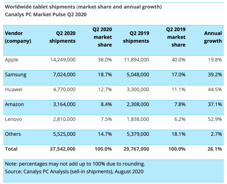 카날리스 관계자는 "코로나19에 따라 실내 활동 인구와 원격 교육 등이 늘어나면서 태블릿 PC 시장이 특수를 누렸다"라며 "가족 구성원 간 필요한 전자기기 수가 늘어났는데 데스크톱·노트북보다 상대적으로 저렴한 태블릿 PC이 선택받았다"라고 설명했습니다.