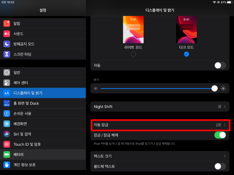 -자동 잠금 2분으로 장시간 화면 켜짐 방지