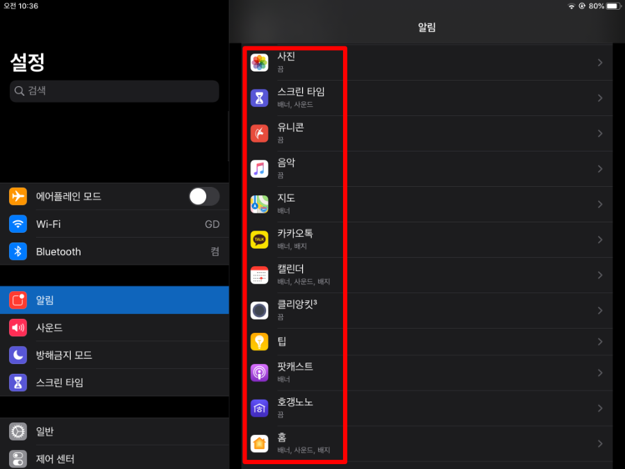 알림에서 보시면 다양한 앱들마다 개별적인 설정을 할 수 있습니다. 카카오톡 같은 경우는 아이폰으로 바로 알림을 받아보니 잠금화면에서 알림을 끄고, 사운드도 꺼놨습니다. 요즘 자주쓰는 당근마켓도 그렇게 설정했고요. 호갱노노 같은 앱은 그냥 알림을 껐습니다. 직접 들어가면 알림이 뜹니다.