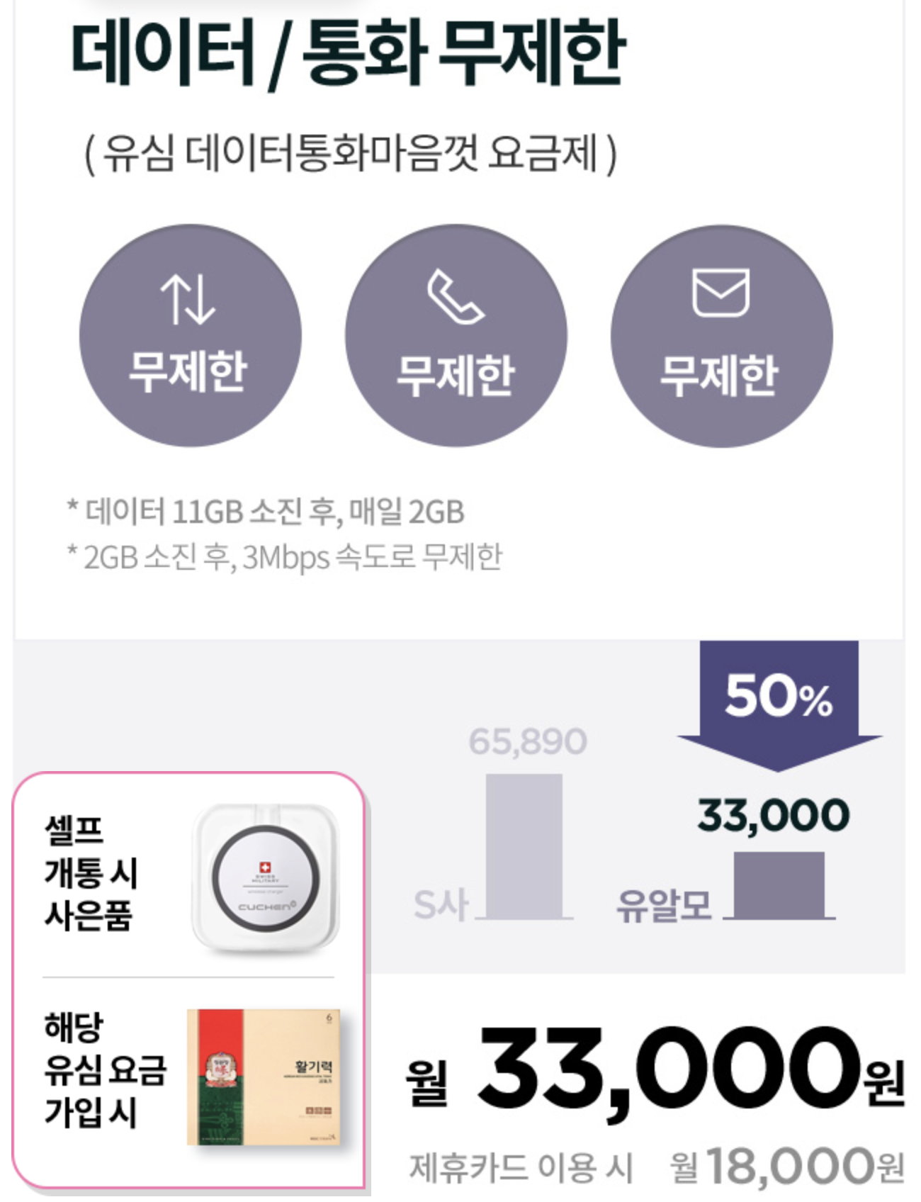 *무제한 요금제 3.3천원을 이용중이며 이 요금제를 기준으로 포스팅합니다