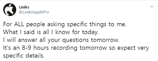 아이폰 12 키노트 이벤트 녹화가 시작되었다고 합니다! @LeaksApplePro에 의하면 애플은 새로운 아이폰 12 이벤트 녹화를 오늘부터 시작했으며 주요한 사항 몇 가지를 발표했는데요. 이제 곧 공식적인 발표가 있겠지만 조금이라도 빨리 알아보도록 하죠.