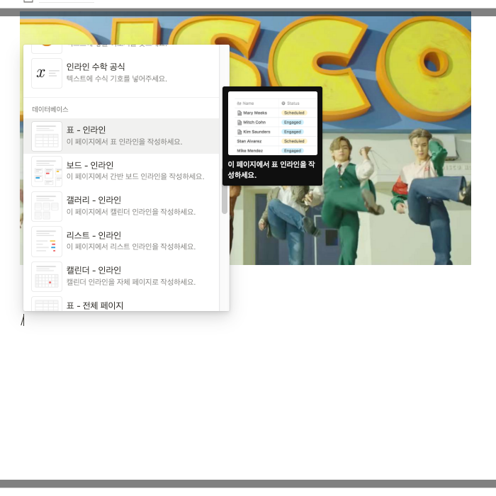 *TIP: 추가로 할일 목록 같은 자주 사용하는 표는 기본 블록으로 제공되고 있습니다.