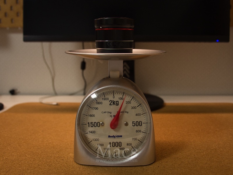제조사에서 밝히는 무게는 93g입니다. 제가 측정한결과 필터 + 후드와 앞뒤 캡까지 포함하면 110g이 조금 넘습니다. 어쨌든 무척 가볍다는 이야기입니다.