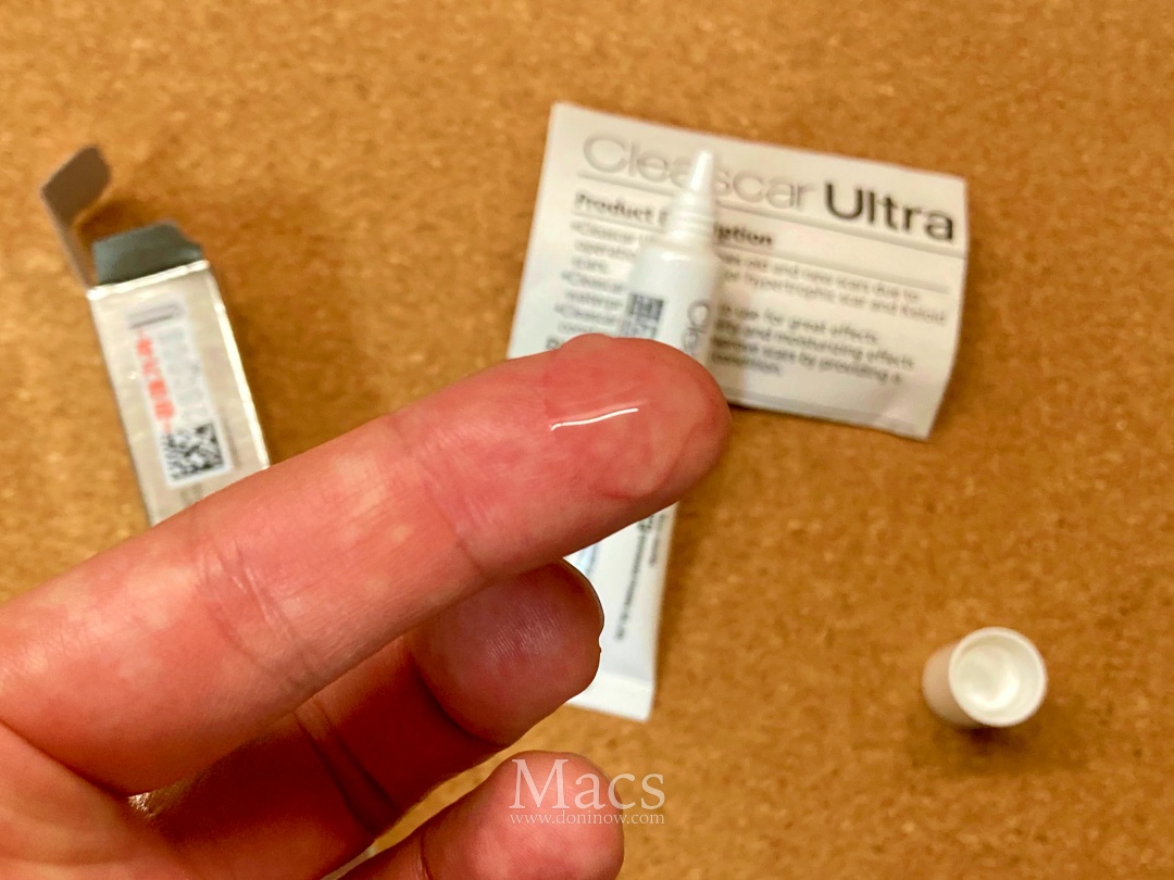 어떻게 치료한 건지 자세히 물어봤습니다. 먼저 두 가지 약을 약국에서 구매하고 꾸준히 이용했다고 합니다. 하나는 연고 타입의 더마틱스 울트라 겔, 또 하나는 붙이는 패치 타입에 시카케어였습니다.